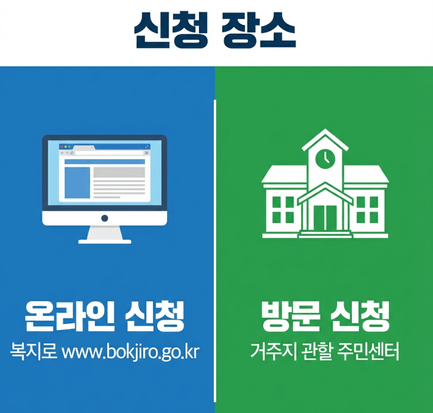 - 온라인 신청: 복지로 홈페이지(www.bokjiro.go.kr)
