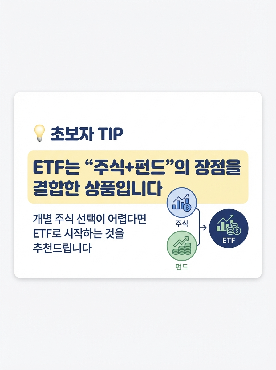 ETF(Exchange Traded Fund, 상장지수펀드)는 여러 주식을 한 바구니에 담아 주식처럼 거래할 수 있는 상품입니다. 개별 주식보다 안전하고, 일반 펀드보다 수수료가 저렴해 초보자부터 전문가까지 선호하는 투자 방법이죠.