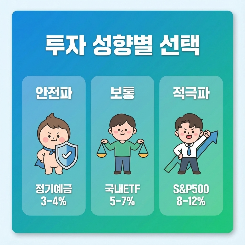- 적극파: 미국 S&P500 ETF (연 8~12% 수익)