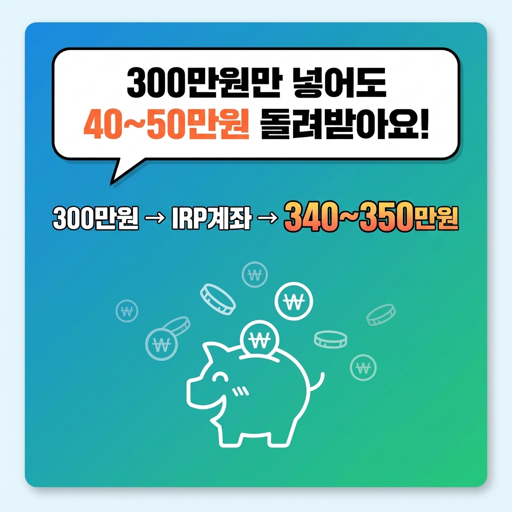 IRP계좌에 돈을 넣으면 나라에서 세금을 돌려줘요. 이게 가장 큰 혜택이에요!