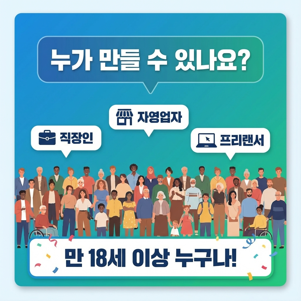 직장인, 자영업자, 프리랜서 누구나 만들 수 있고, 만 18세 이상이면 가능합니다!