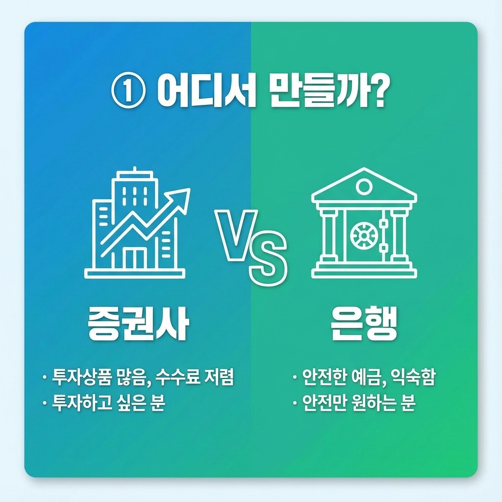 | 증권사 | 투자상품 많음, 수수료 저렴 | 투자하고 싶은 분 |