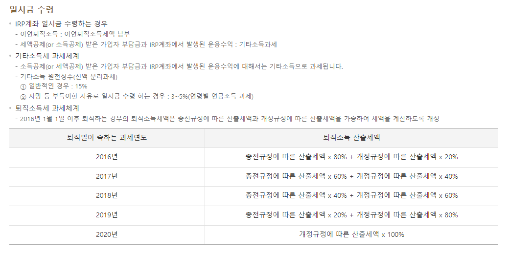 IRP퇴직연금 수령방법 (기간, 혜택)