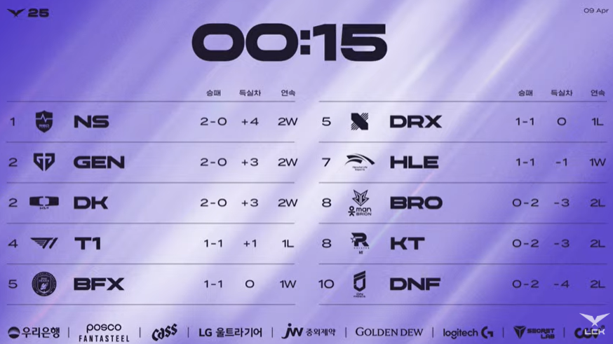 • 4월 2일: 한화생명 e스포츠 vs 젠지 (개막전)
